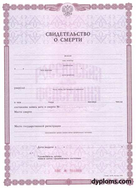 Не медлите! На нашем сайте вы можете быстро получить свидетельство о смерти, оформив онлайн-заказ и при необходимости проконсультировавшись с нашими экспертами. Документ будет изготовлен на качественной бумаге с необходимыми подписями и печатями.